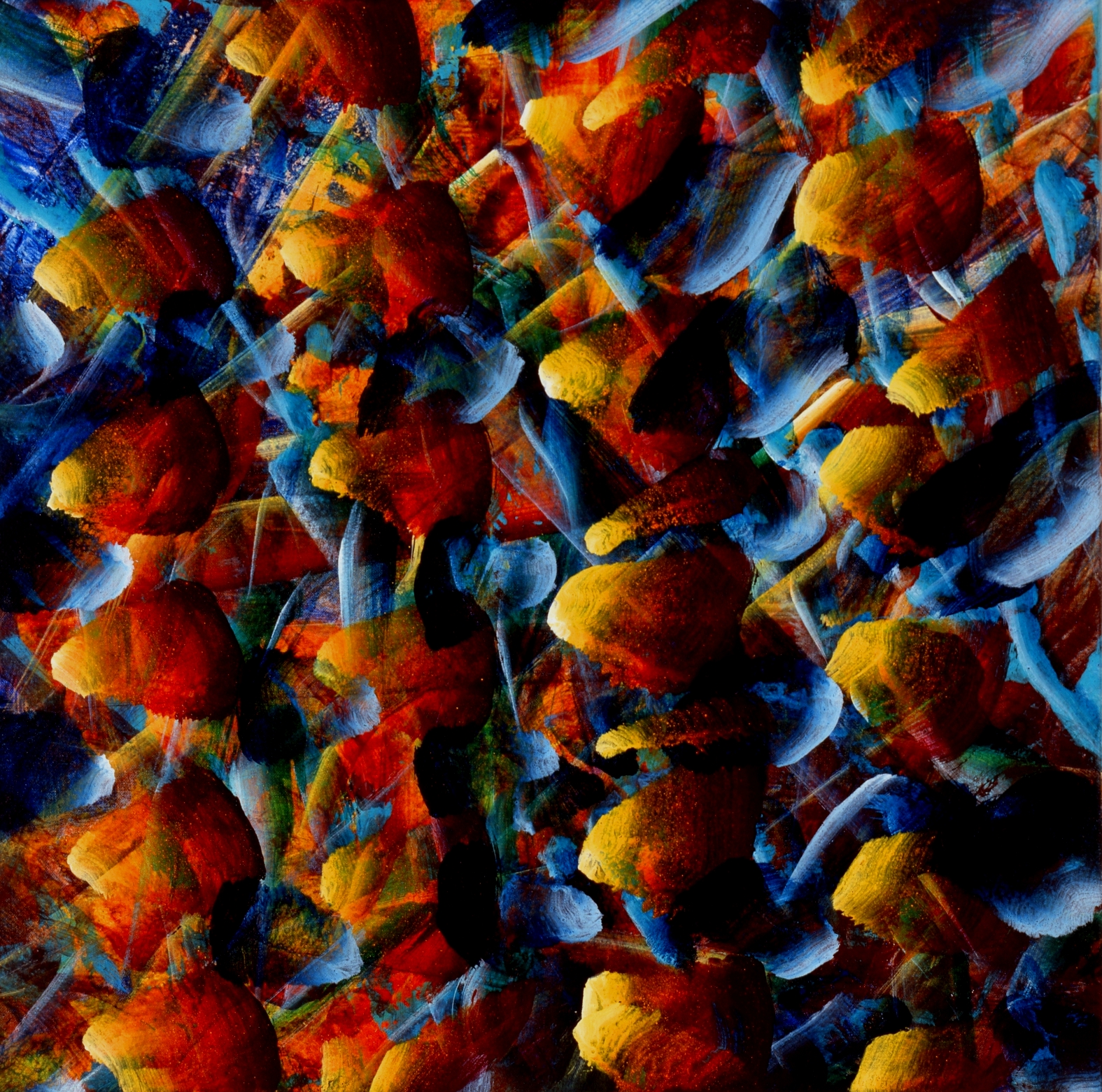 Titel: 4 Wirbelsäulen Jahr: 1997 Kategorien: 1996-1997, Malerei Technik: Acryl auf Köper Größe: 35 x 35 cm Untertitel: Wirbelsäulen