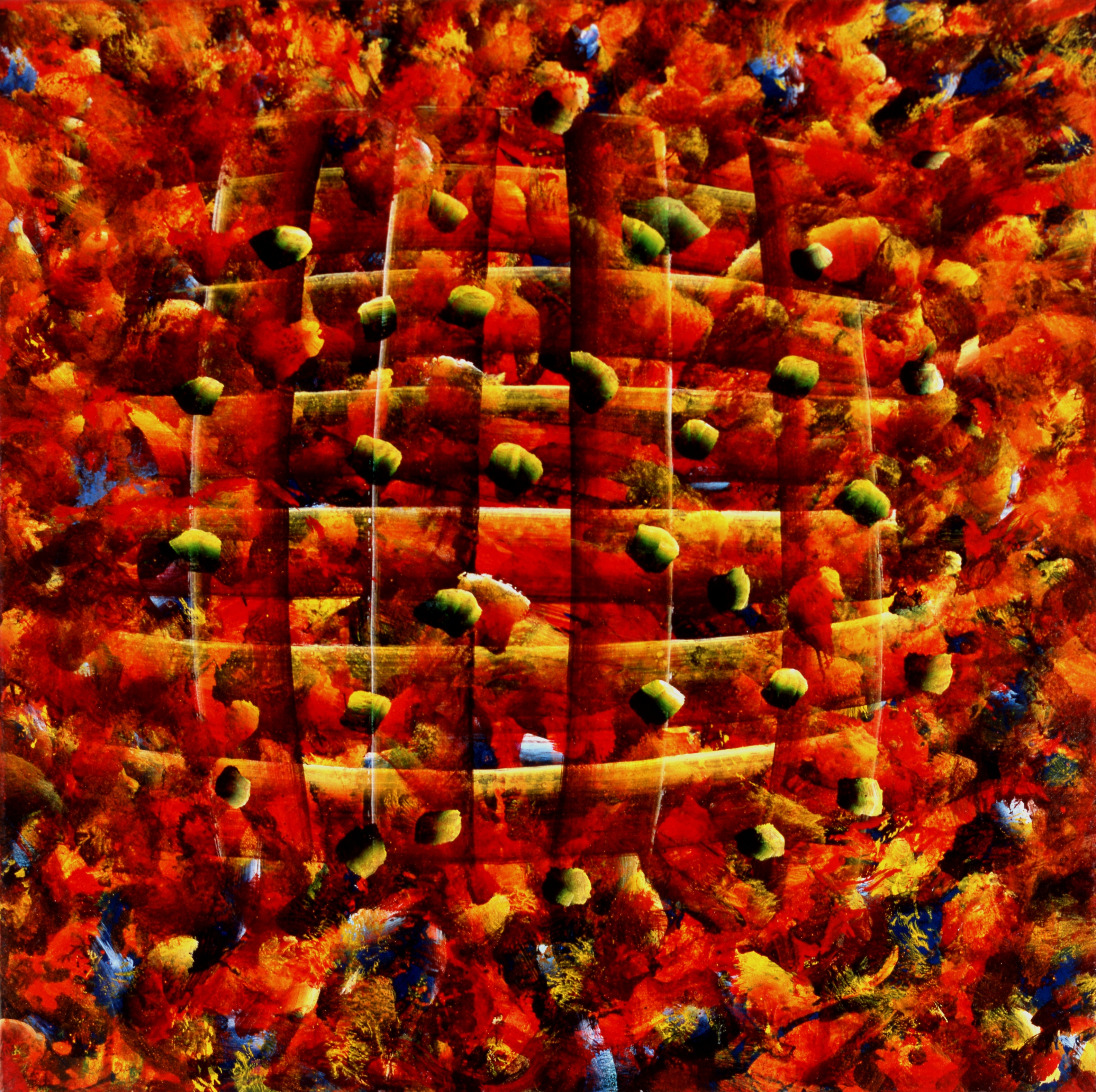Titel: Berliner Granate Jahr: 1997 Kategorien: 1996-1997, Malerei Technik: Acryl auf Köper Größe: 45 x 45 cm Untertitel: Berliner_Granate