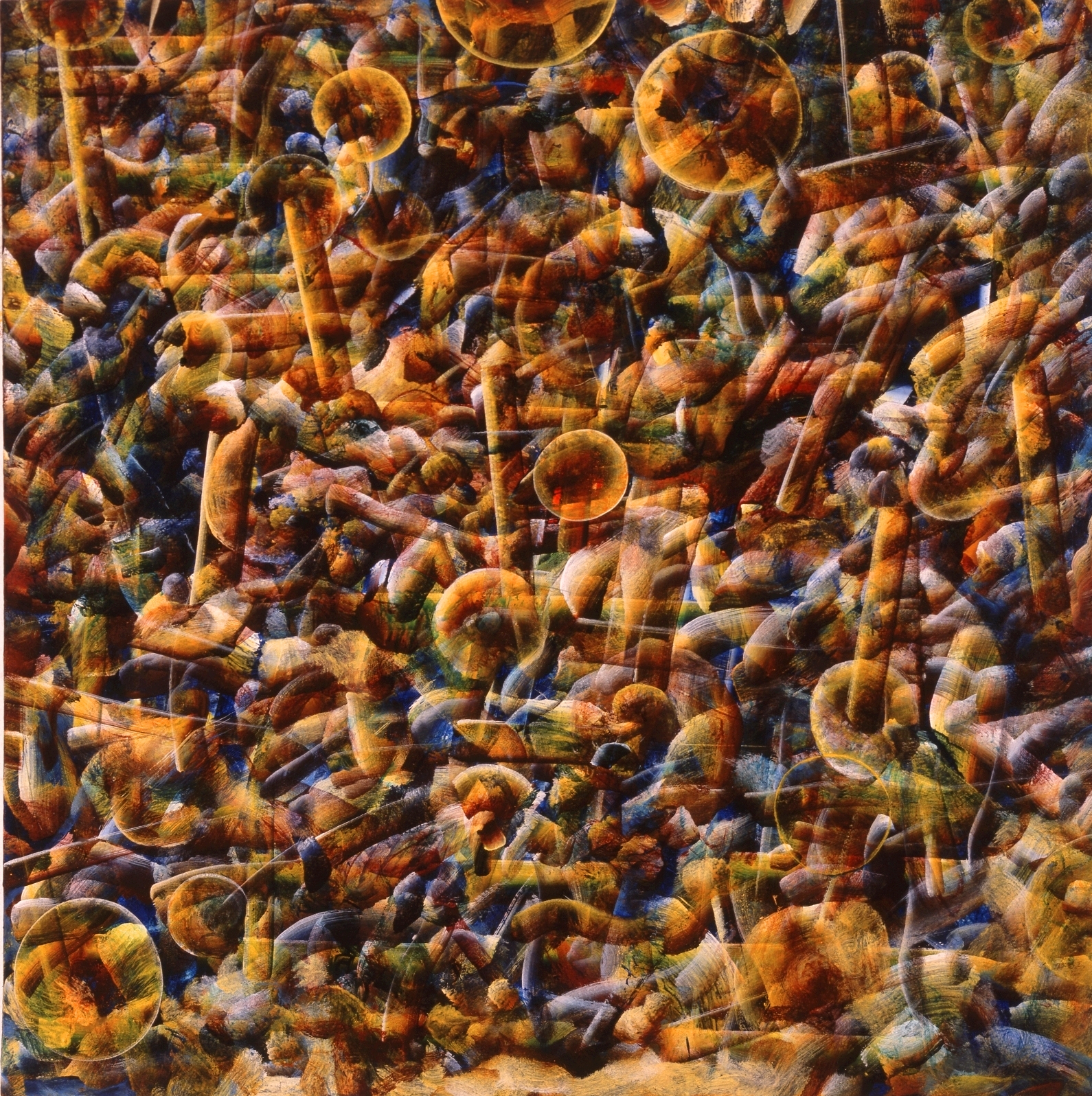 Titel: Böhmische Bläser üben in Berlin Jahr: 1997 Kategorien: 1996-1997, Malerei Technik: Acryl auf Köper Größe: 100 x 100 cm Untertitel: Böhmische_Bläser
