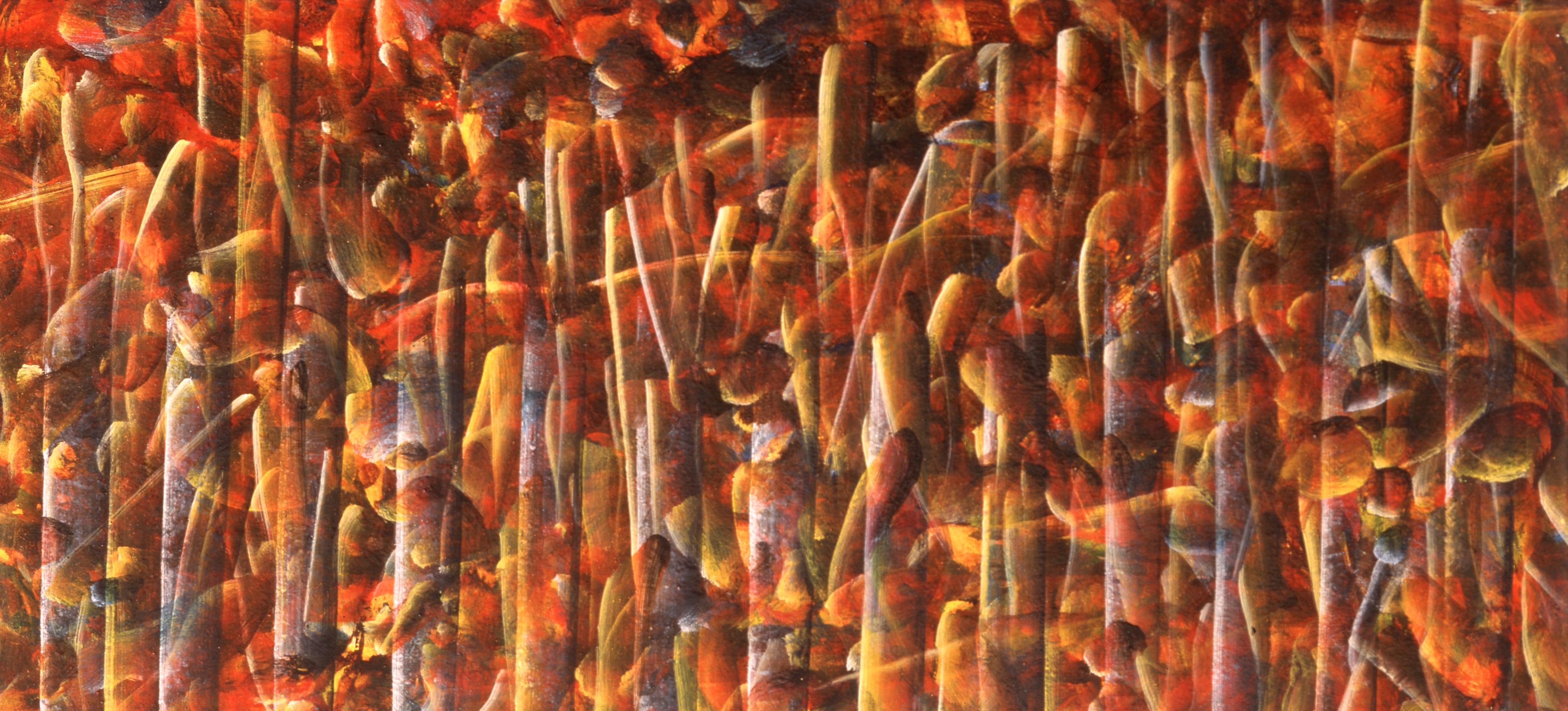 Titel: Brandfall Jahr: 1998 Kategorien: 1998-1999, Malerei Technik: Acryl auf Köper Größe: 50 x 110 cm Sammlung: Chiara und Wolfgang Warth Untertitel: Brandfall_formatiert