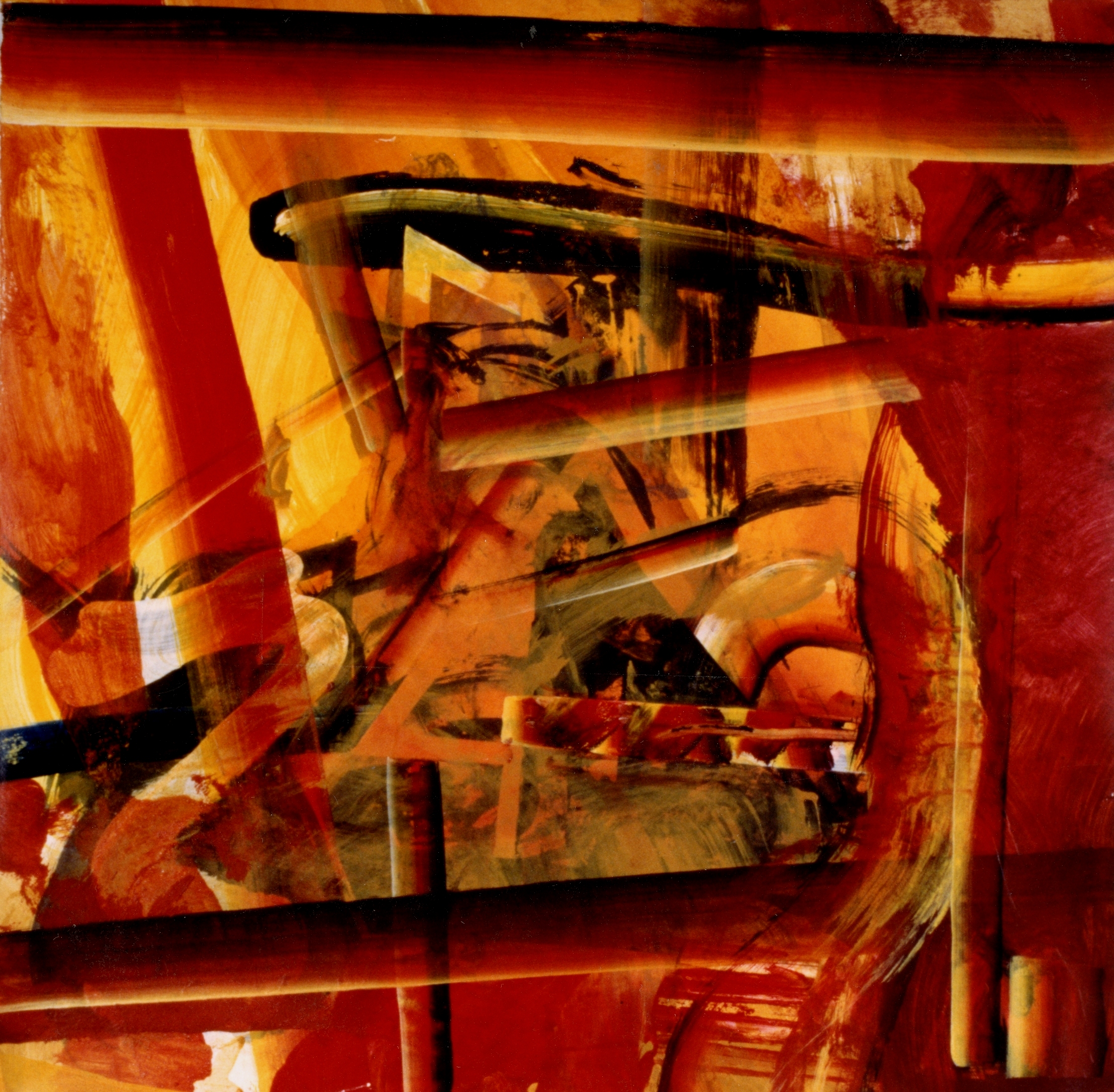 Titel: Fast durchgeblickt Jahr: 1993 Kategorien: 1993, Malerei Technik: Divers auf Büttenpapier Größe: 64 x 64 cm Untertitel: Fast_durchgeblickt2