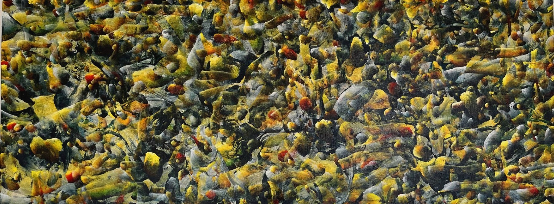 Titel: Fledermäuschen Jahr: 2009 Kategorien: 2008-2009, Malerei Technik: Acryl auf Köper Größe: 59 x 155 cm Untertitel: Fledermäuschen_2