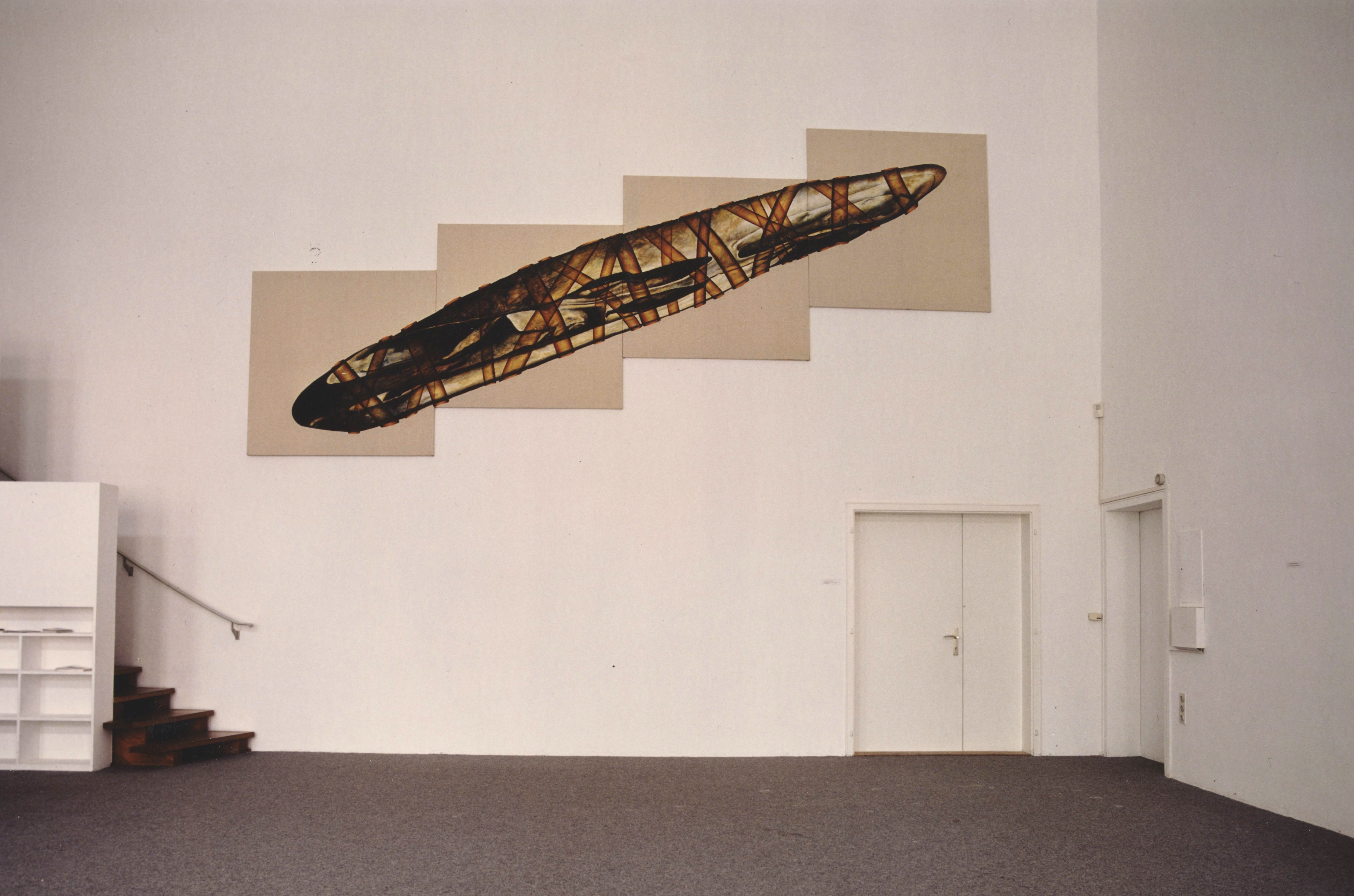 Titel: Im Angesicht des Lebens – Vanitasmotiv nach Hans Holbein der Jüngere (vierteilig) Jahr: 1994 Technik: Acryl auf Papier Größe: 160 x 640 cm Kategorien: 1995 - 1994, Malerei