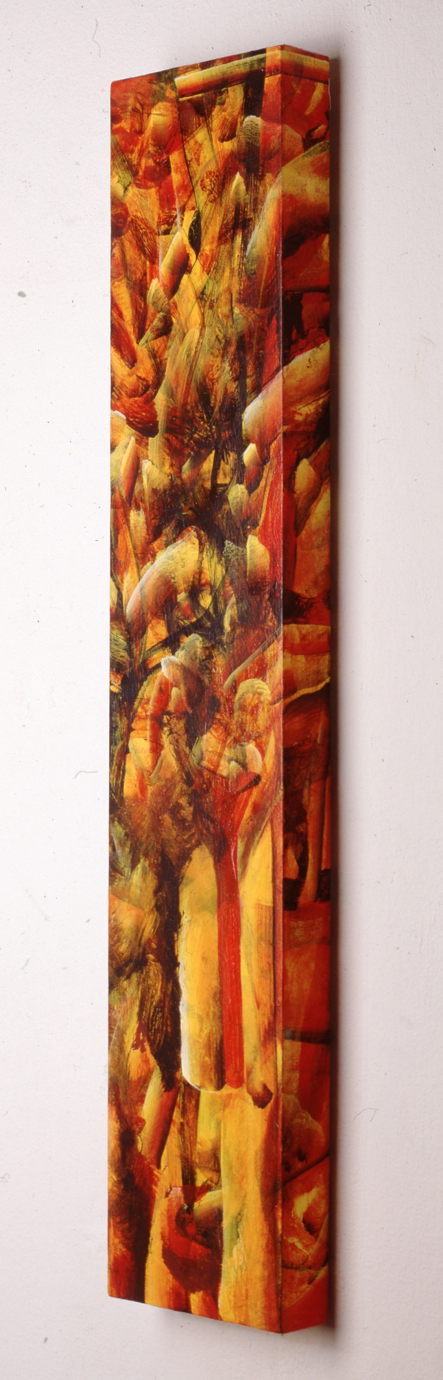 Titel: Kleiner ordentlicher Hölleforscher Jahr: 1997 Kategorien: 1996-1997, Malerei Technik: Acryl auf Köper Größe: 76 x 14 cm Untertitel: Hölleforscher