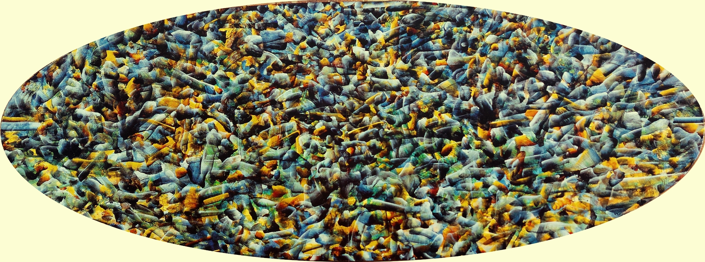 Titel: Pokemon Jahr: 2000 Technik: Acryl auf Leinwand und auf Holz Größe: 125 x 345 cm oval Kategorien: 2000, Malerei