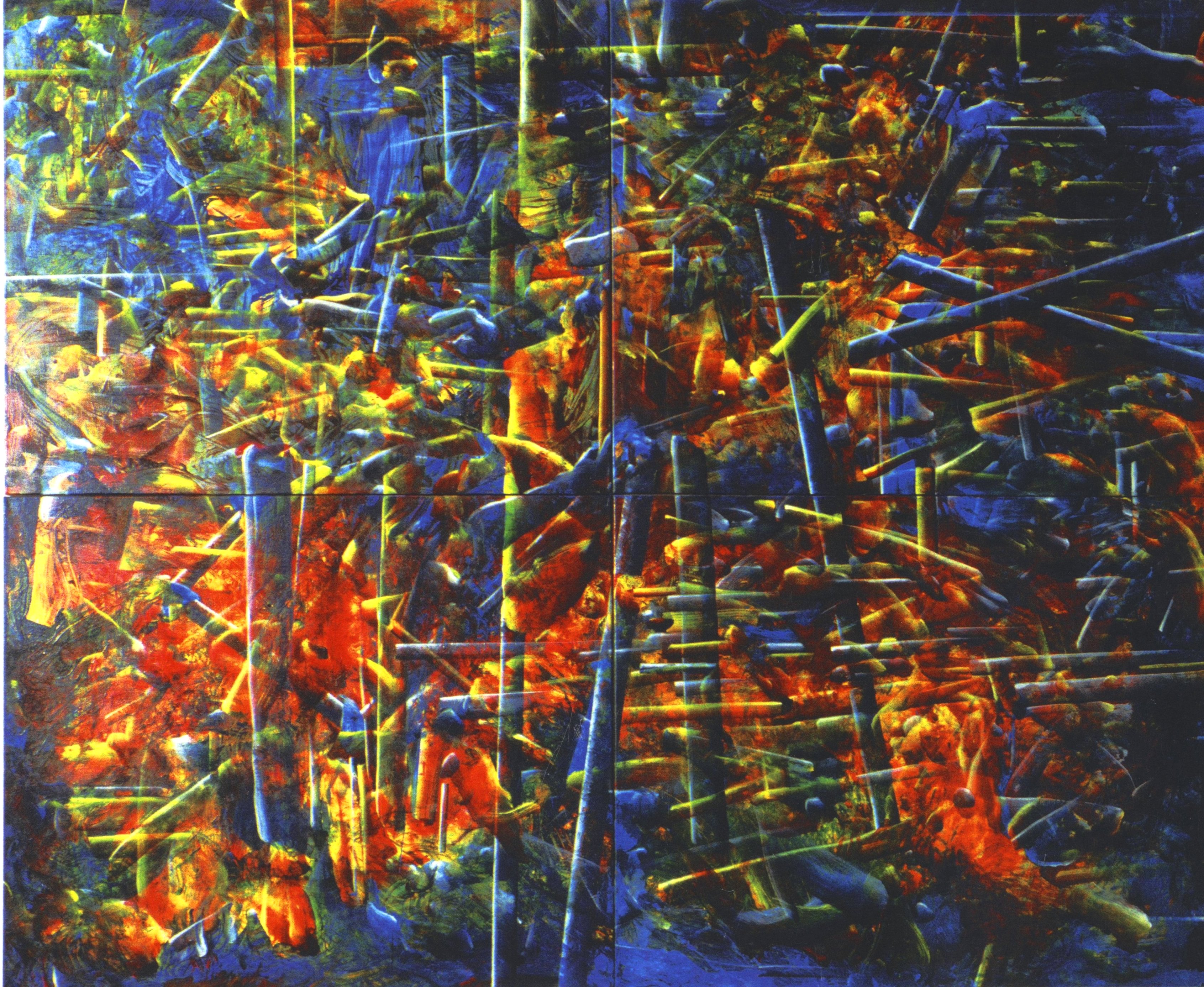 Titel: Schiffsreisen ins Landesinnere (vierteilig) Jahr: 1998 Technik: Acryl auf Leinwand Größe: 280 x 320 cm Kategorien: 1999 - 1998, Malerei
