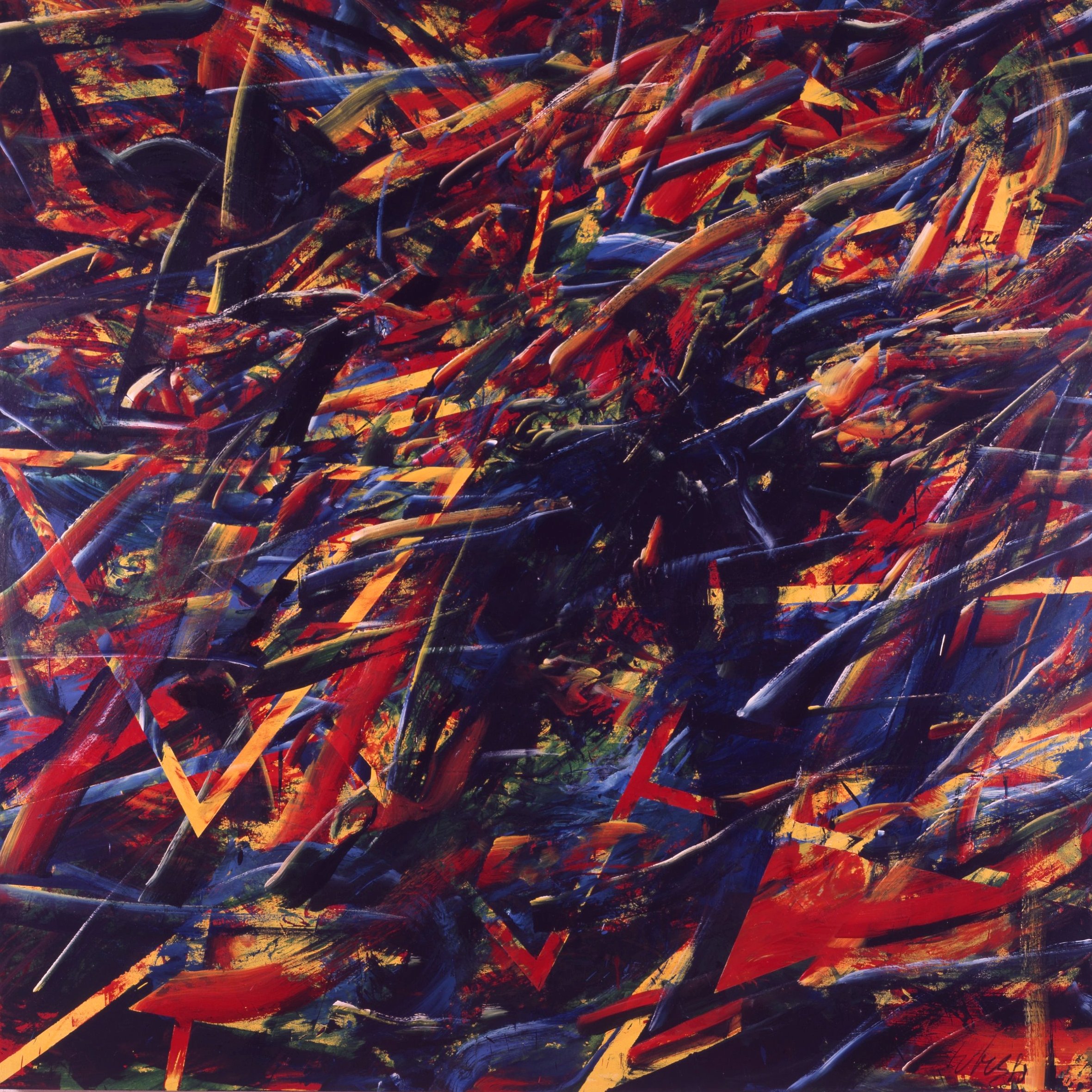 Titel: Stuttgart 87-88 Jahr: 1988 Kategorien: 1988, Malerei Technik: Acryl auf Köper Größe: 200 x 200 cm Sammlung: Willy Asperger Untertitel: Stuttgart87_88